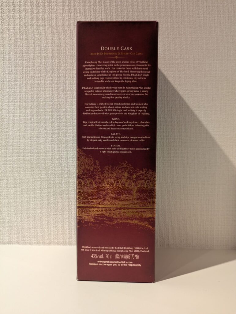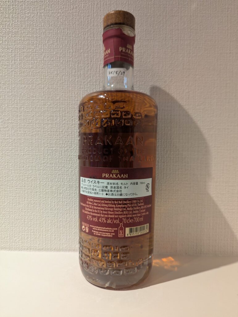 PRAKAANの文字が真ん中にその下にはシングルモルトであることが記載されています。